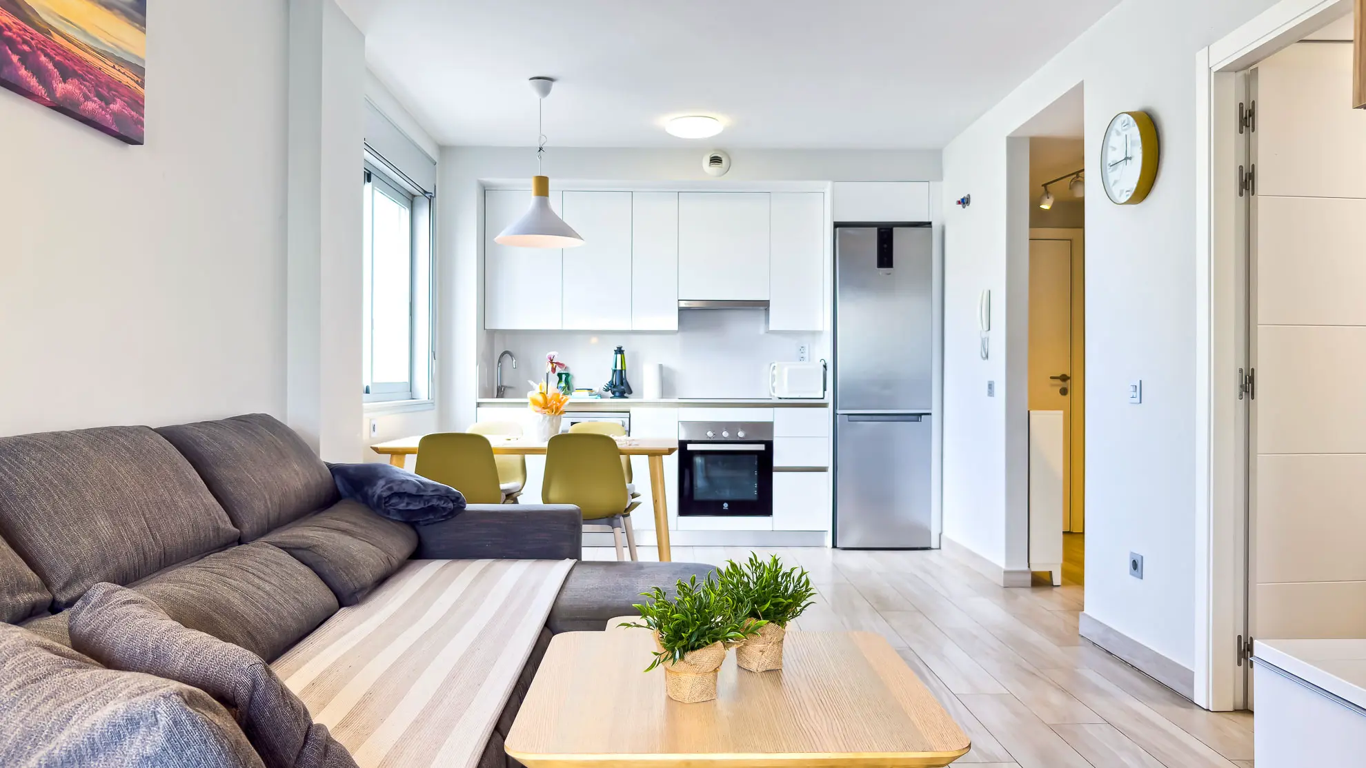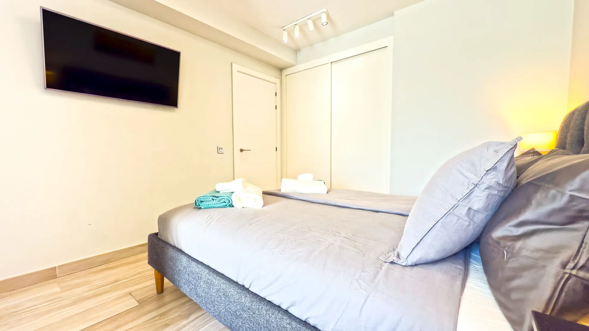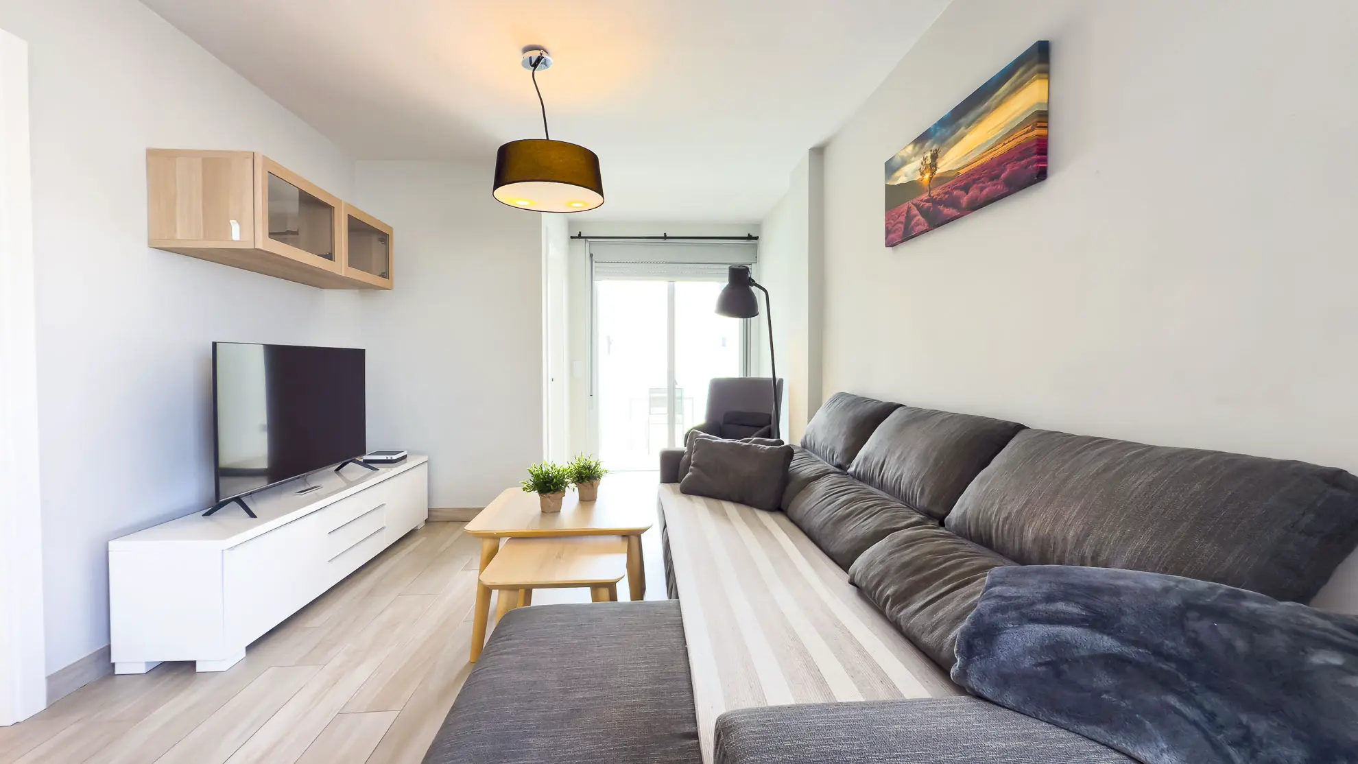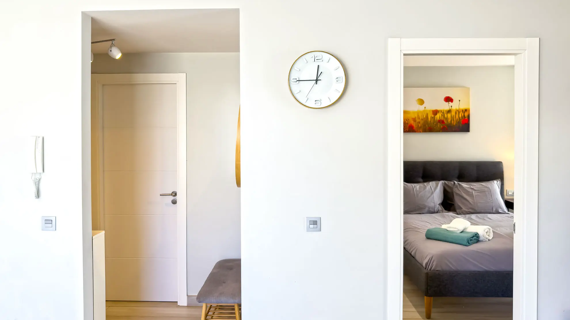 Apartmán je navržen s ohledem na maximální pohodlí a praktičnost. Obě ložnice jsou vybaveny komfortními manželskými postelemi a nabízejí dostatek úložného prostoru. Hlavní ložnice navíc disponuje psacím stolem, což ocení každý, kdo potřebuje pracovat i během dovolené. Prostorný obývací pokoj s velkou chytrou televizí a rozkládací sedačkou tvoří centrum apartmánu, je elegantně propojen s plně vybavenou kuchyní a jídelním koutem.