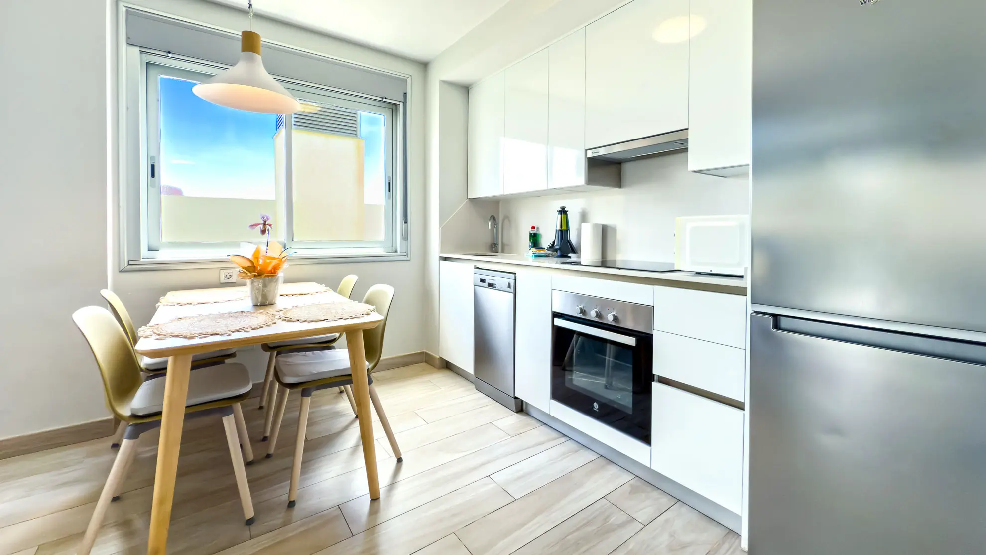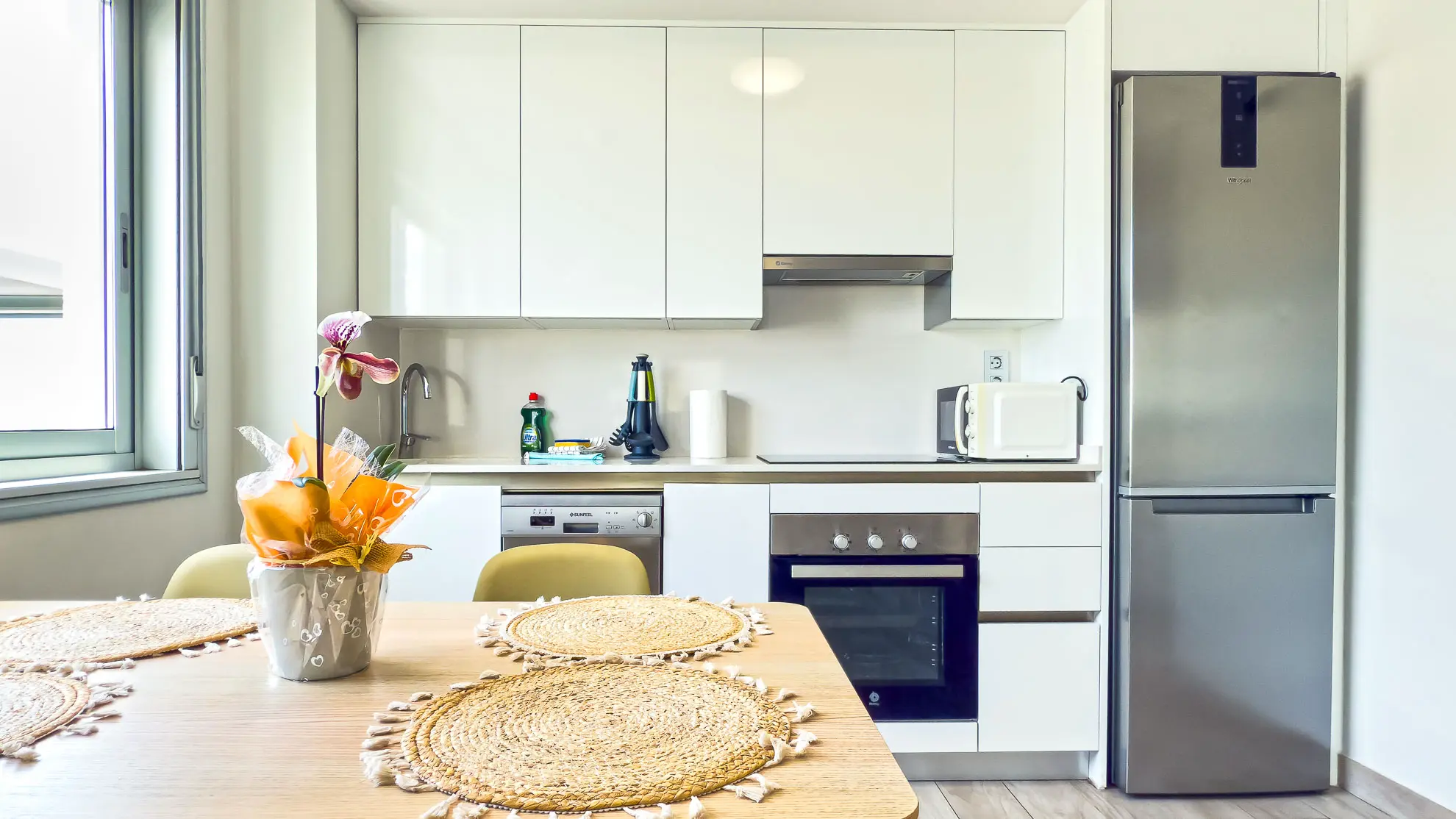 Plně vybavená kuchyň, ačkoliv menší, nabízí vše, co potřebujete pro přípravu chutných jídel. K dispozici je moderní trouba, mikrovlnná trouba, myčka na nádobí, a dokonce i kávovar na espresso (Nescafé), takže si můžete každé ráno dopřát kvalitní kávu. Koupelna se sprchovým koutem a samostatná prádelna s pračkou a úklidovými prostředky zajišťují, že váš pobyt bude bezstarostný a pohodlný. Samozřejmostí je i ložní prádlo a kompletní sada ručníků, včetně těch plážových, abyste byli dokonale připraveni na každý den strávený u moře.