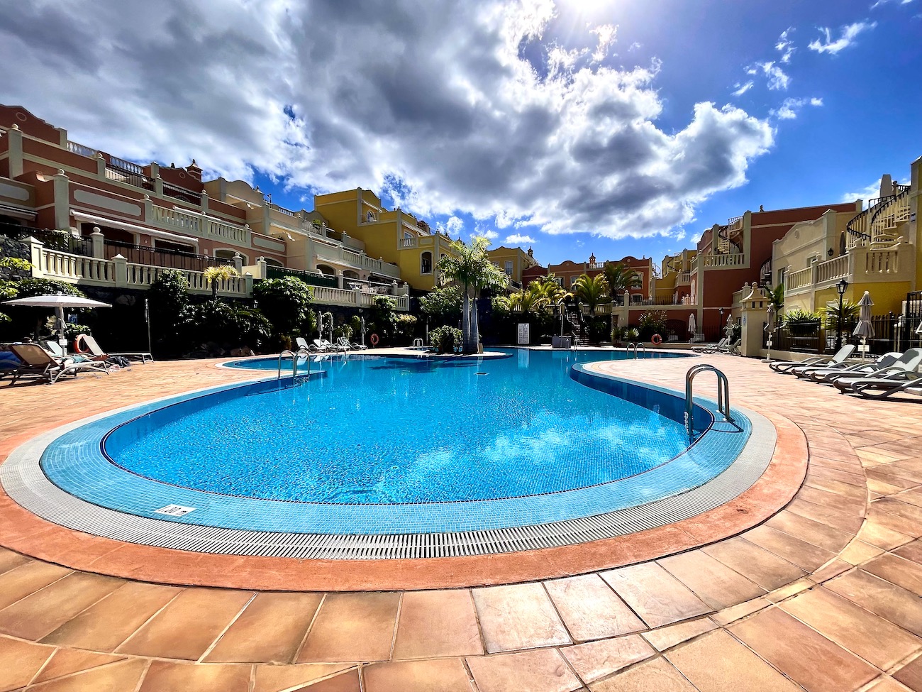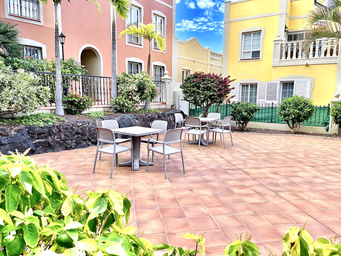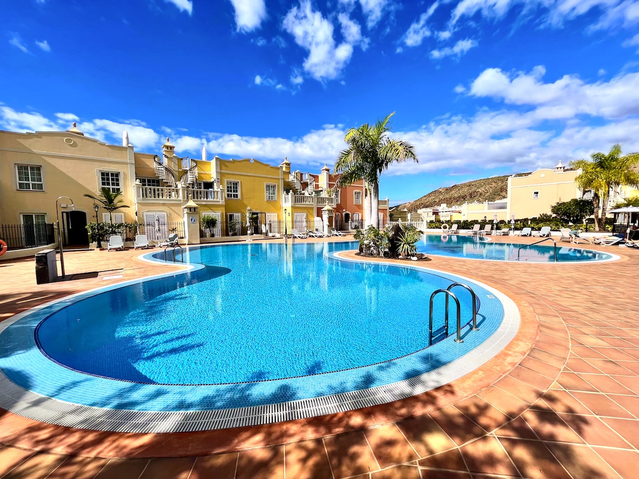 Guests can also enjoy communal areas featuring seating areas under palm trees and multiple large swimming pools. Las Mariposas is an idyllic retreat for couples or small families seeking serenity while exploring the wonders of Tenerife. Book your stay at our exquisite holiday apartment in Palm-Mar now.