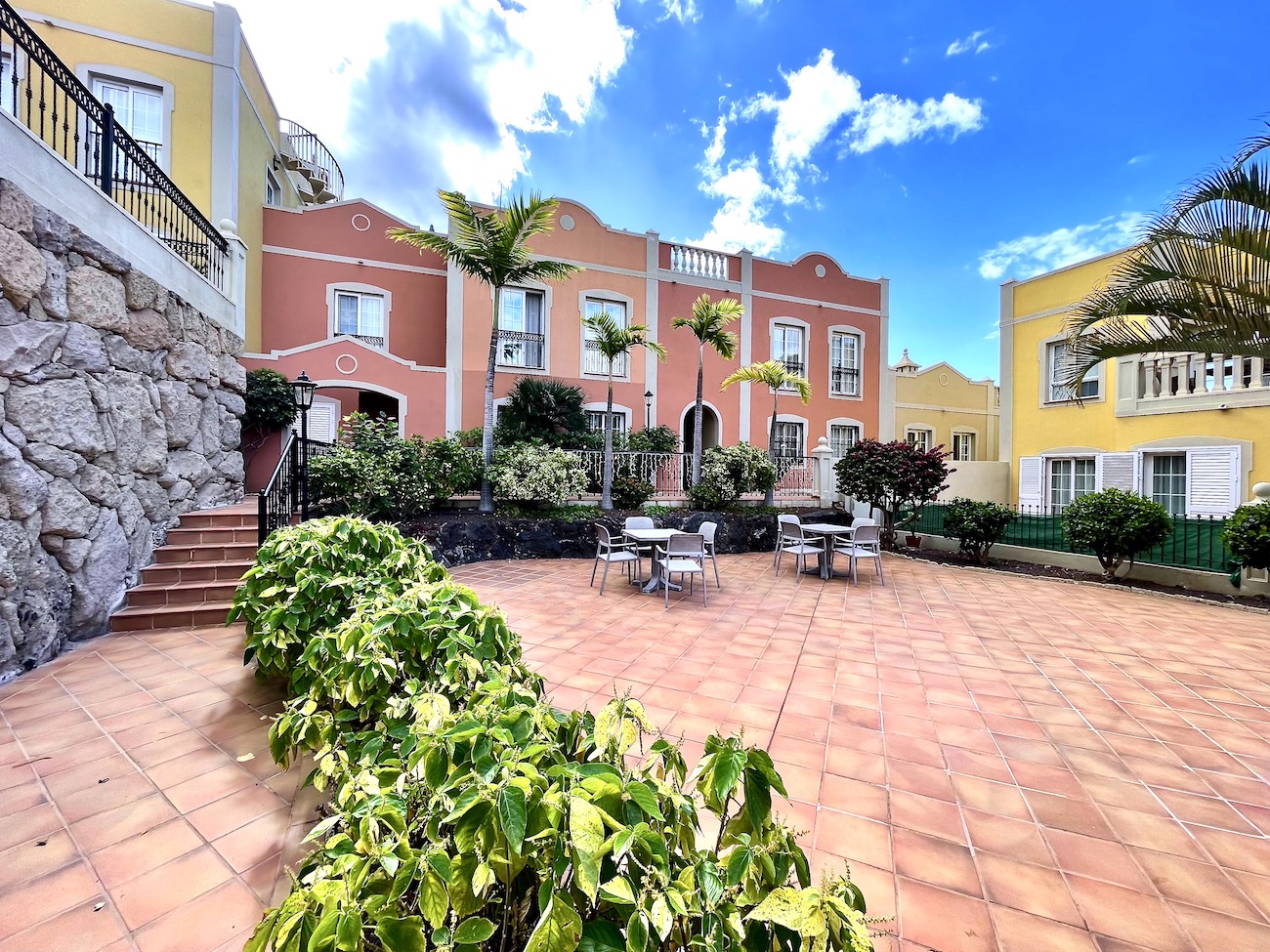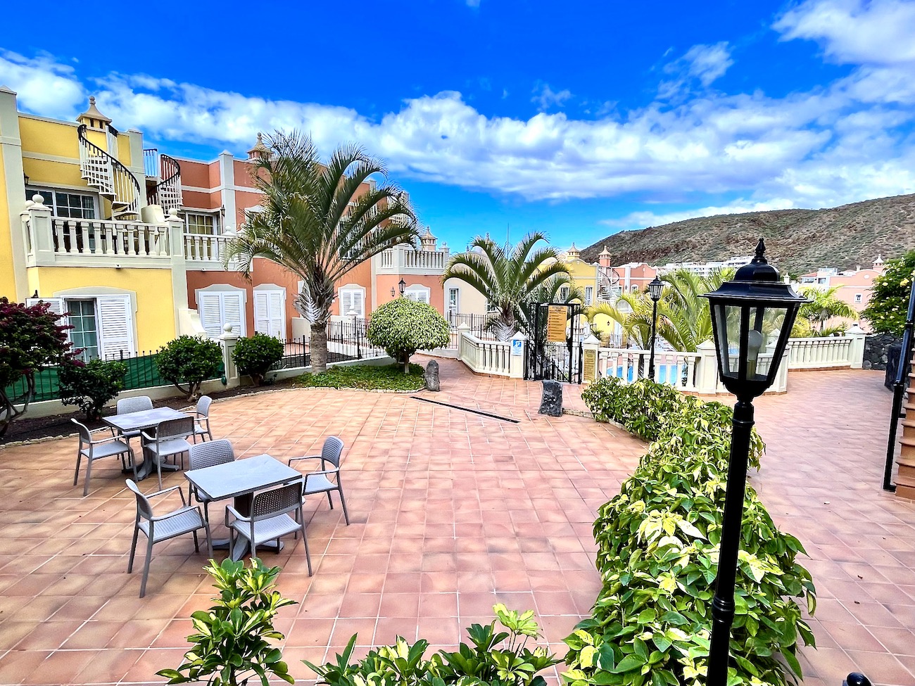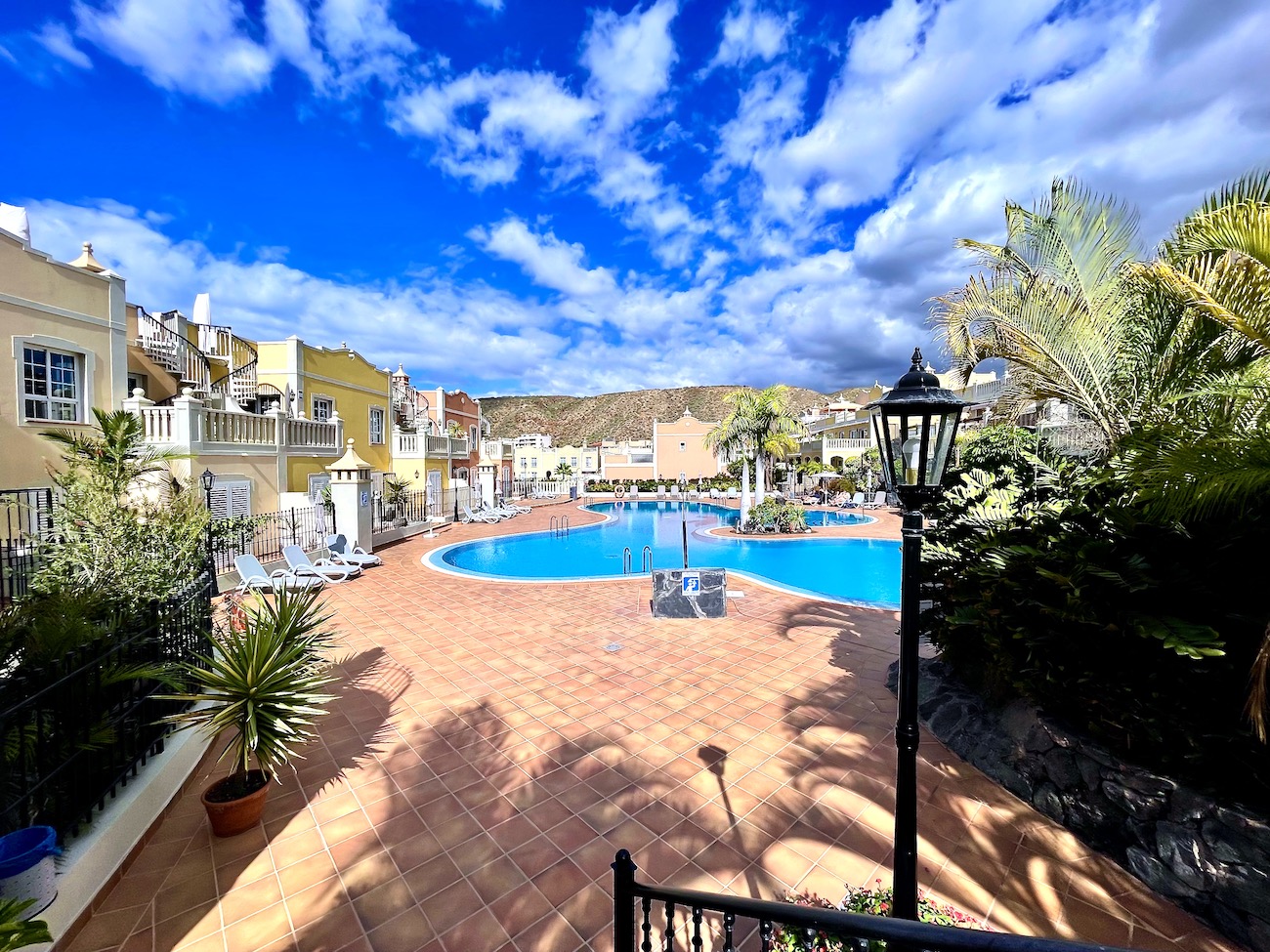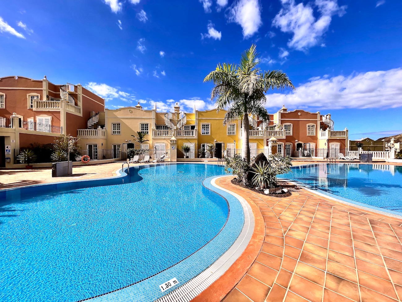 Guests can also enjoy communal areas featuring seating areas under palm trees and multiple large swimming pools. Las Mariposas is an idyllic retreat for couples or small families seeking serenity while exploring the wonders of Tenerife. Book your stay at our exquisite holiday apartment in Palm-Mar now.