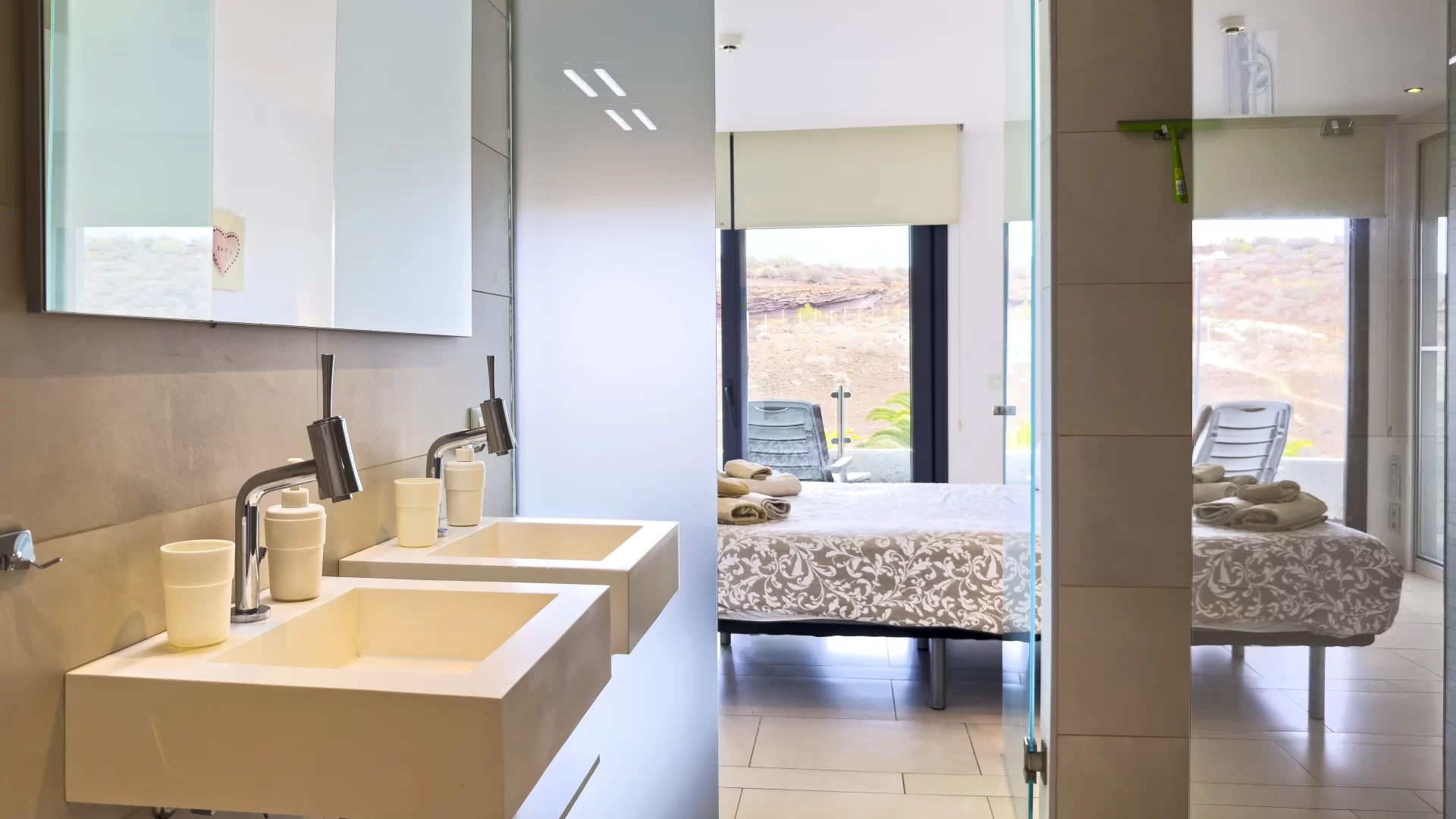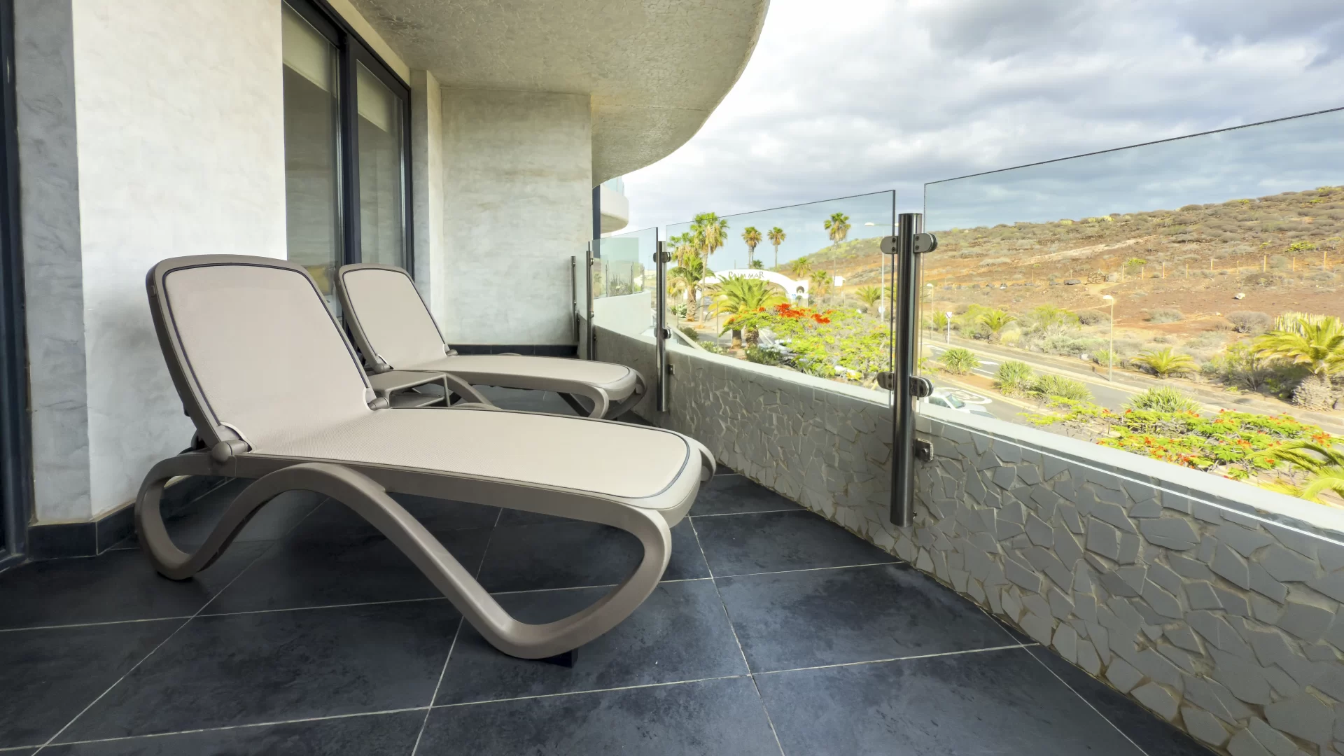 The apartment is spacious, with large windows that let in plenty of light. Two large terraces offer views of both the pool and the protected landscape of "Malpaís de la Rasca¨. On this terrace, there are two sun loungers available, so you can sunbathe in the comfort of your own home.